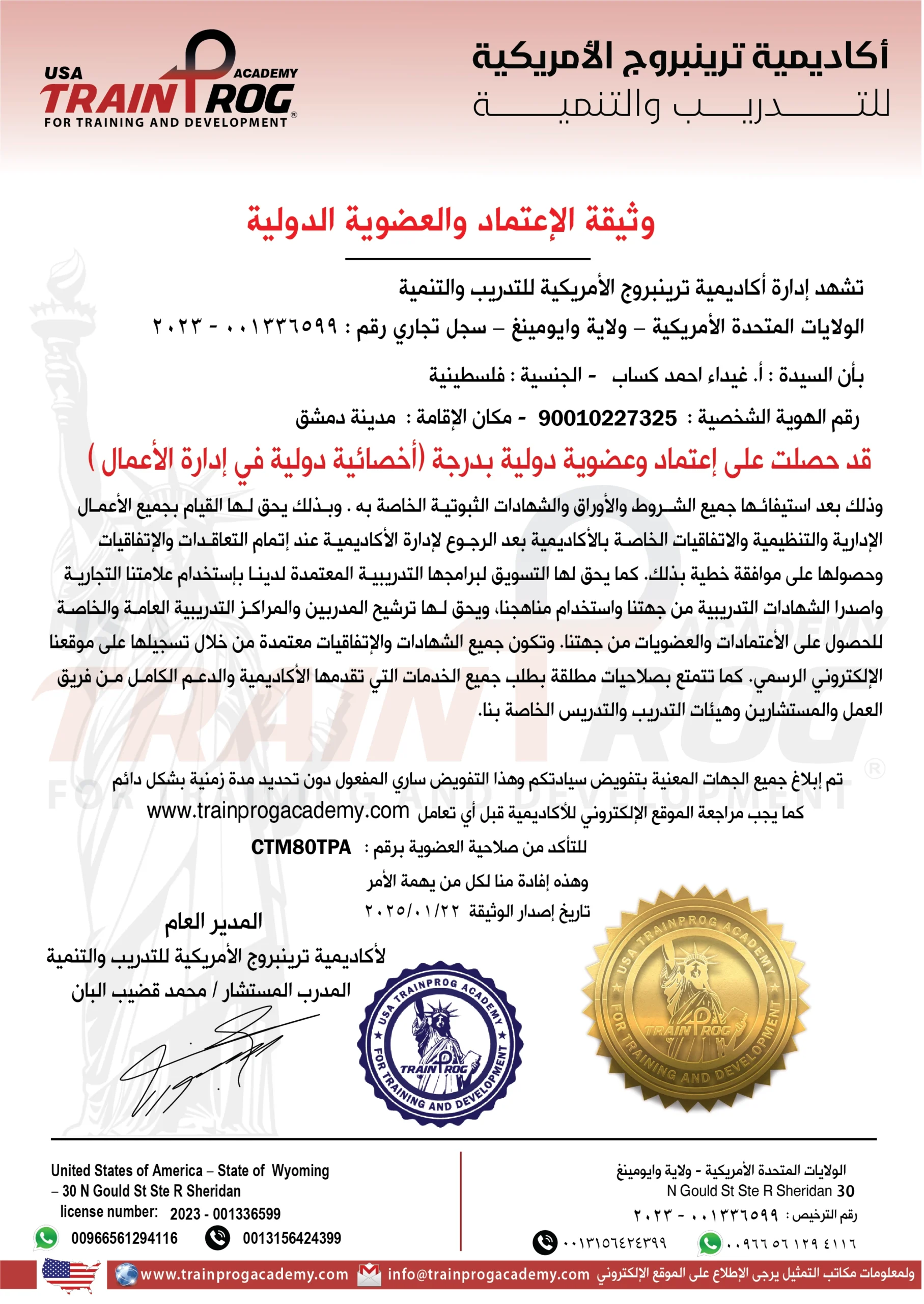 الاعضاء المعتمدين دوليا للافراد